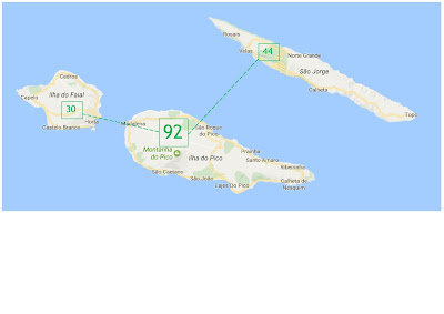 Terceira, a Ilha de São Miguel e a Ilha do Faial com respetivamente uma nova