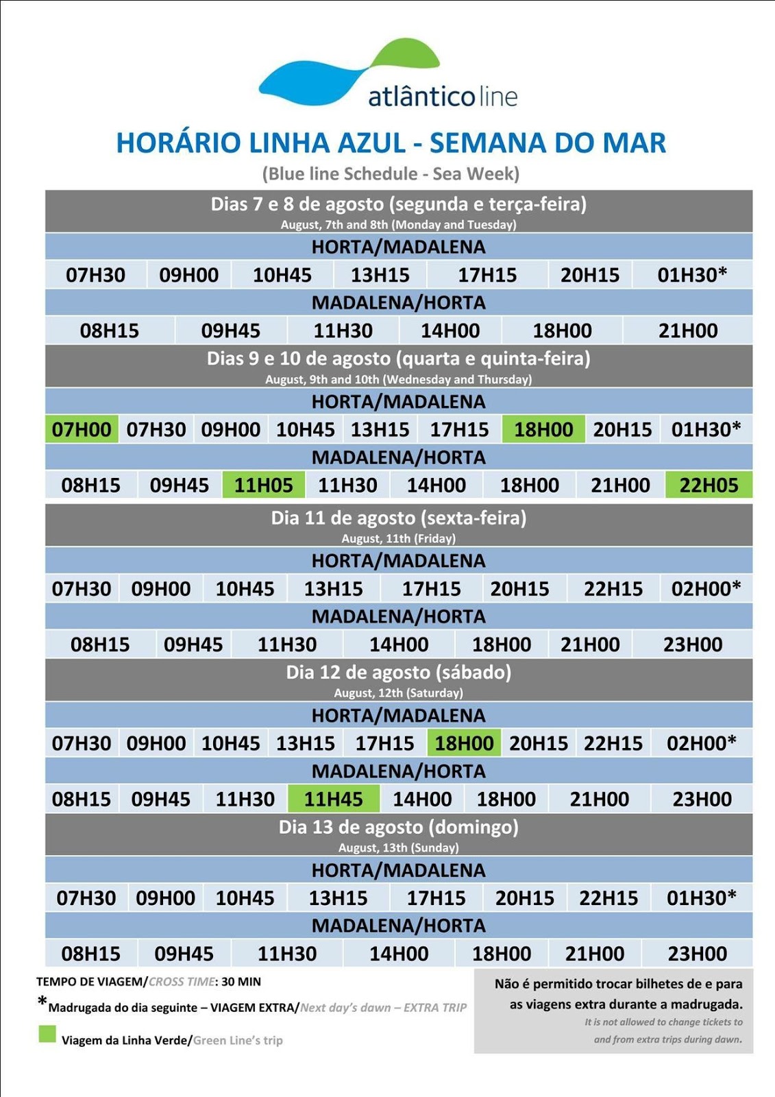Madalena tiveram todos os dias lanchas de regresso para a Horta às 02:30 e a